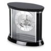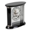 The clock has Roman numerals and black spade-style hands. It’s designed to be placed on a mantel or shelf.